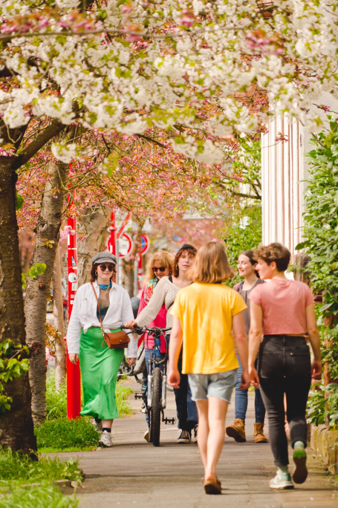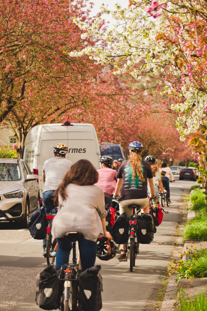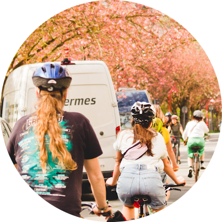 In diesem Szenario wird klimaneutrale Mobilität angestrebt. In der Stadt wird sich vorrangig zu Fuß, auf dem Rad oder mit elektrisch betriebenen Bussen bewegt. Die mit Autos zurückgelegten Wege würden drastisch verringert (nämlich um 50%). Dies kann nur durch eine klare Priorisierung des Umweltverbundes (z.B. bei der Verteilung von Straßenraum) unter breiter Beteiligung der Bürger*innen erreicht werden.
