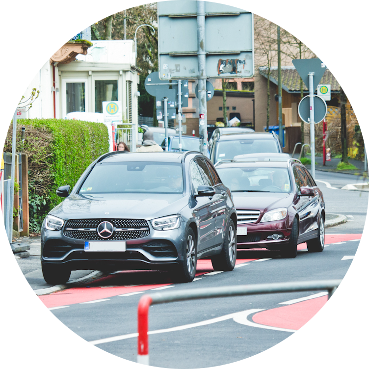 In diesem Szenario wird klimaneutrale Mobilität angestrebt. In der Stadt wird sich vorrangig zu Fuß, auf dem Rad oder mit elektrisch betriebenen Bussen bewegt. Die mit Autos zurückgelegten Wege würden drastisch verringert (nämlich um 50%). Dies kann nur durch eine klare Priorisierung des Umweltverbundes (z.B. bei der Verteilung von Straßenraum) unter breiter Beteiligung der Bürger*innen erreicht werden.
